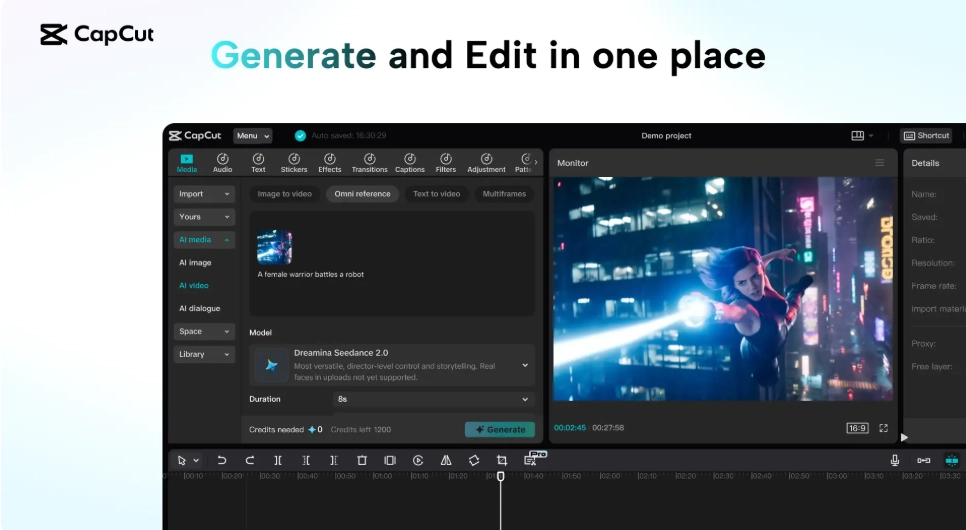 此外,Dreamina Seedance 2.0 已在 CapCut 应用、桌面和网页端上线,