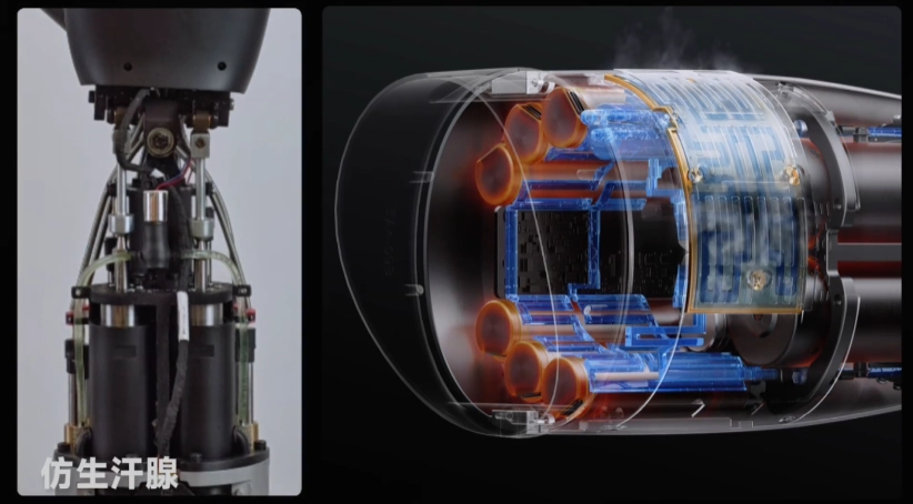 (室温下 1 mL 水蒸发可带走 2000 焦以上热量),在紧凑的小臂结构中,采用金属 3D 打印制作液冷循环通道,通过微泵将电机热量转移至蒸发区,利用蒸发吸热快速降温。