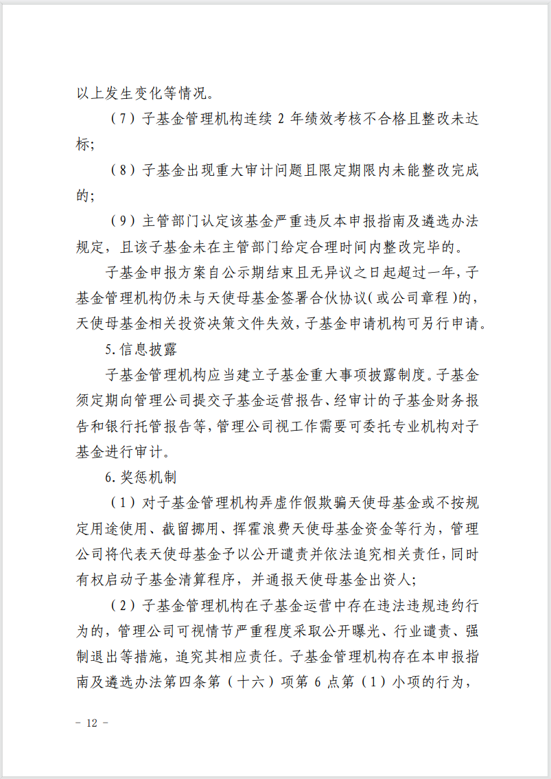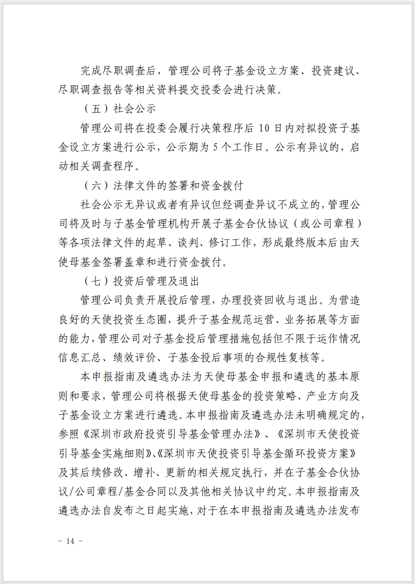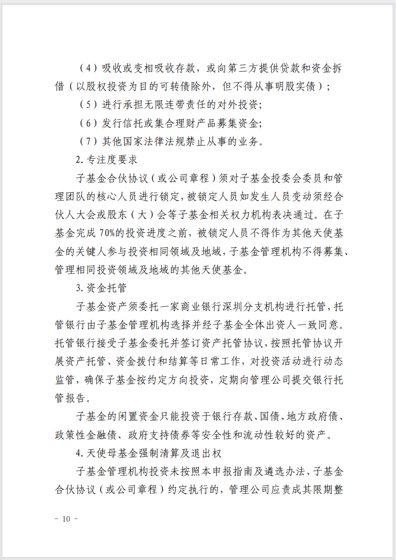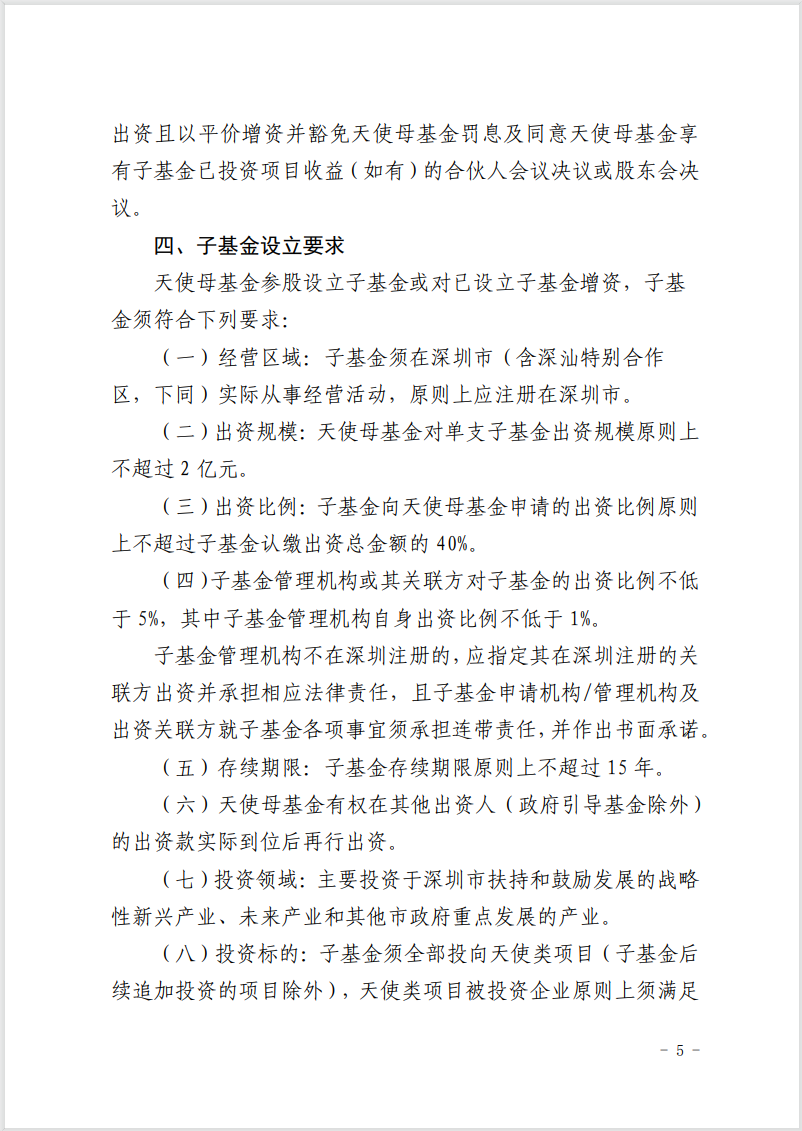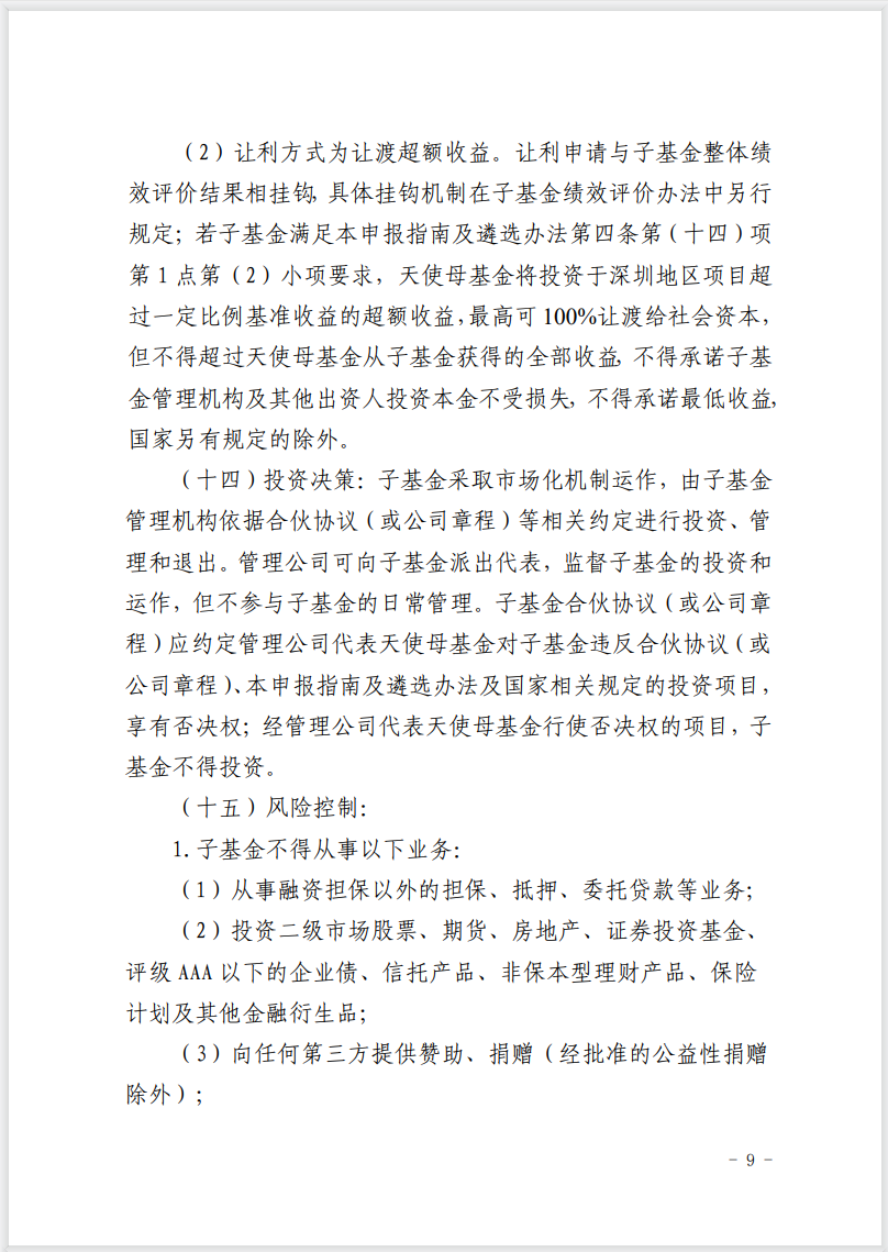 3月26日,深天使正式发布《深圳市天使投资引导基金申报指南及遴选办法,投资总额超过90亿元。但自2024年4月以来,深圳天使母基金未再开展参股子基金遴选,本次新版的发布,既是对近两年相关政策文件的响应,也释放了后续继续出资的积极信号。通过对比2026年版与2020年版,我们发现深天使在放宽准入、优化返投、拉长周期、强化绩效等多个维度协同发力,既降低了优质机构的合作门槛,又更精准地引导资本投向早期硬科技。以下6点,是新旧两个版本的差异之处,当然也可看做是政府投资基金发展的趋势信号。01.取消GP落地硬约束旧版办法中,除了头部机构外,管理机构原则上必须在深圳注册。新版取消了这一限制,仅要求子基金原则上注册在深圳,且管理机构只需在深圳设置固定办公场所及核心人员常驻(缴纳社保)即可。这一调整,降低了机构在深展业的成本,也顺应了近年来的政策趋势——不再执着于把机构锁在深圳,而是更看重人才和项目能不能真正落地。02.投资能力增加投中独角兽与小巨人指标新版对投资能力的认定进行了升级。不仅考察管理规模,而且明确要求至少投出过1个独角兽、或1个10亿美元市值公司、或3个国家级专精特新“小巨人”。这意味着,深圳天使母基金对业绩要求的更高,更倾向于将资金交给有过成功挖掘战新产业中明星企业的团队。 03.延长存续期与新增接续投资早期硬科技创业周期长、投入大,深天使母基金也针对这一特点做了调整。存续期延长:新版将存续期从10年延长至15年,给底层技术更多成长时间,也顺应了耐心资本的方向。接续投资:新增了接续投资要求,鼓励子基金拿出不低于10%的金额投向种子库或种子子基金已投的项目。同时,通过设置“20+8”产业基金在后续轮融资的优先投资权,打通了“种子-天使-成长期”的资本接力棒。04.返投松绑新版弱化了返投条款,并且不再强制要求1.75倍返投。明确只要投资深圳的金额不低于天使母基金的实缴出资,即有机会申请回购或让利。这里的回购是指回购子基金份额。“子基金投资金额超过自身实缴金额75%以上,且投资深圳的金额不低于天使母基金实缴出资金额时,其管理机构及其他出资人可以申请回购天使母基金持有的基金份额。”05.激励机制的精细化与绩效挂钩新版完善了回购与让利机制。虽然延续了最高100%让渡超额收益的政策,但明确规定回购价格和让利资格必须与绩效评价结果挂钩。同时,新版细化了回购价格的构成,对投资非深圳项目和深圳项目的资金收益分别按5%和2%的单利计算。06.探索循环运作机制旧版未明确天使母基金可循环运作,新版新增“未尽事宜参照《深圳市天使投资引导基金循环投资方案》执行”,这意味着深天使母基金可实现资金的再循环出资,为长期陪伴硬科技企业成长提供了更坚实的制度保障。投中嘉川做过统计,2025年新增或修订的政府投资基金管理办法中,明确允许资金滚动使用的占比为57%,未做明确说明的占比为31%,另有12%的政府投资基金明确不允许如此操作。比如部分地方的管理办法是,“对于归属政府的投资收益、利息、退出的本金等,不得滚动使用,由引导基金按照财政国库管理制度有关规定及时足额上缴国库。”所以,目前在滚动投资机制方面,政府投资基金依然在探索与发展阶段。深天使在文件中明确提到这一点,也体现了多数地方逐步注重财政资金循环放大效应。随着循环运作机制的建立与耐心资本制度的完善,深圳天使母基金也望在早期科技创新培育中发挥更持续的牵引作用。更重要的是,深天使的遴选文件也代表了一级市场的发展趋势。很显然,国资LP主导一级市场后,正在探索一条兼顾政策要求与市场化效率的新模式。文件原文如下: