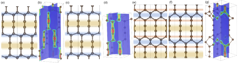sp-sp²-sp³ 杂化 C12:一种同时包含三种杂化态的复杂结构。其 sp-sp² 网络中的π电子高度离域,赋予其金属导电性;同时,该结构还表现出罕见的负泊松比(拉长时横向膨胀),这在碳材料中极为少见。不过,该相在室温下动力学稳定性稍弱(仅稳定至约 100K),但其独特的性能组合为设计多功能材料提供了重要思路。