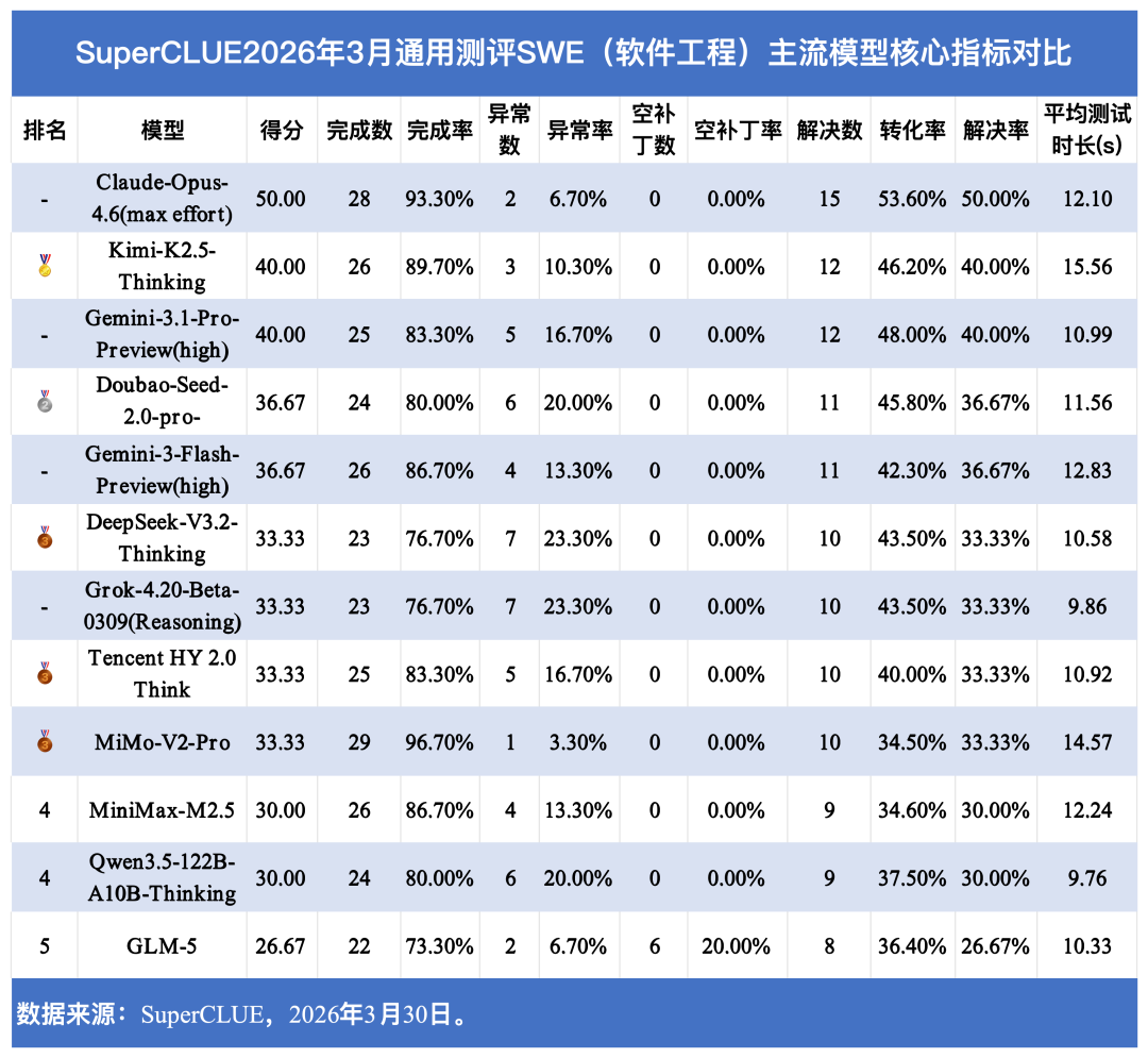 2026年3月通用文本测评——SWE(软件工程)分析:海外旗舰领跑,国产模型梯队化突围