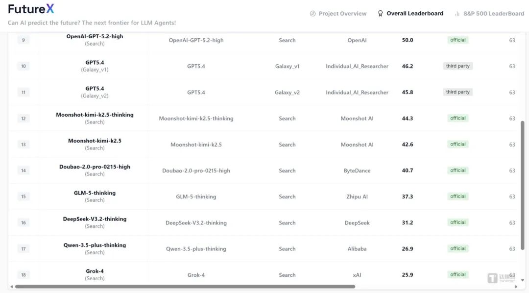 Grok-4以25.9分排在第18位。马斯克曾公开断言:“预测未来的能力,是对模型智能性最好的测试。”