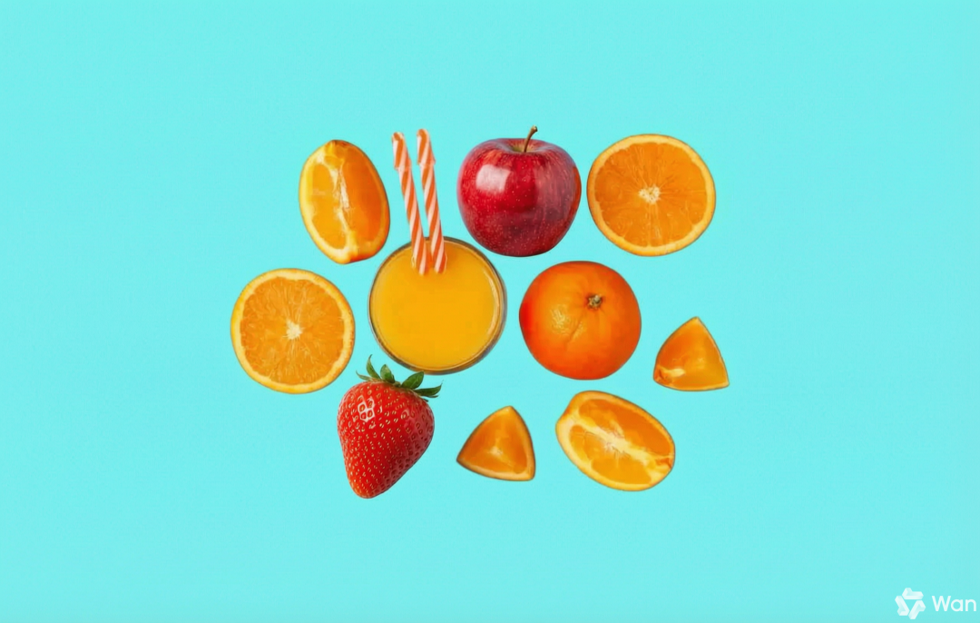 提示词:请把图中框选1的橘子换成苹果,框选2的橘子换成草莓。左图为原图,右图为Wan2.7-Image生成图。