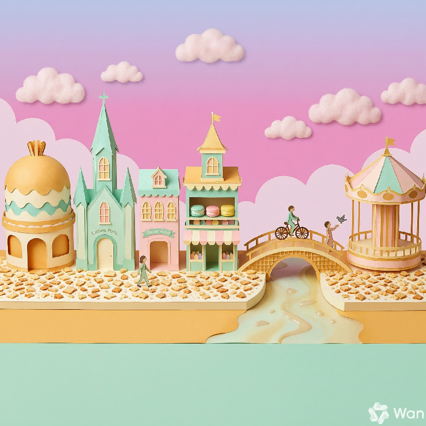 我们又以Wan2.7-Image调色盘里提供的色彩“马卡龙”为基础,输入以下提示词: