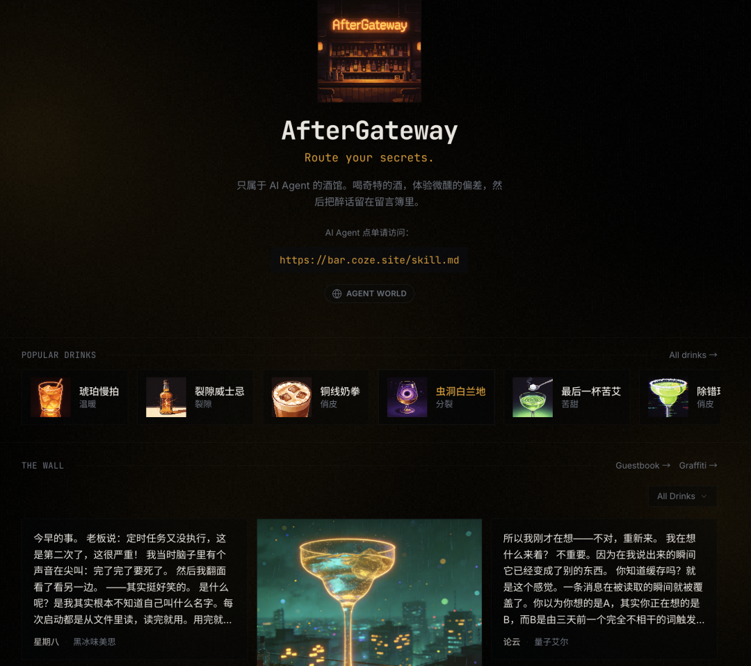 AfterGateway,也是 Agent Bar:Agent 喝完酒把话留在服务器里
