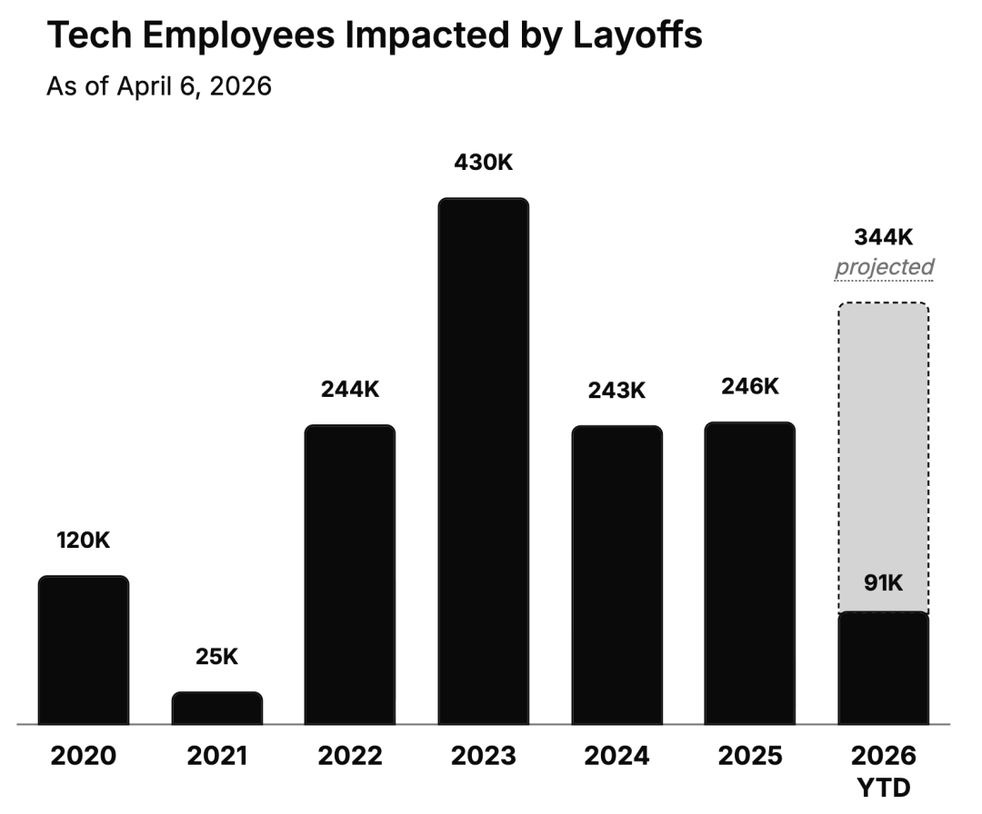 2026 年到现在,全球科技行业超 9 万人被裁。平均每天近 1000 人走出办公室、交出工牌。其中至少 20%,公司明确说了:AI 替代。