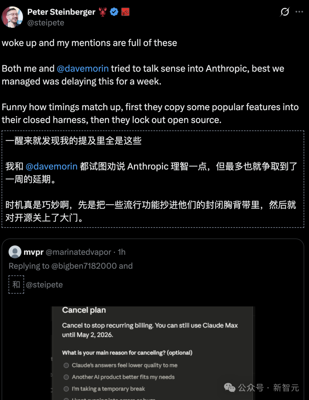 Peter本人也无奈发声,暗示Anthropic「关门打狗」,「白嫖」开源社区: