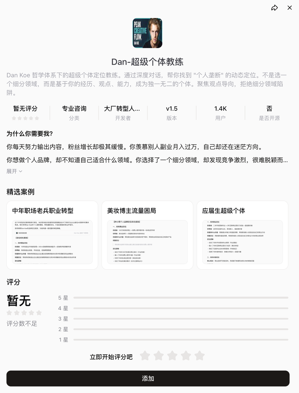 「Dan 超级个体教练」代表的是另一种封装思路:封装一整套咨询方法论。