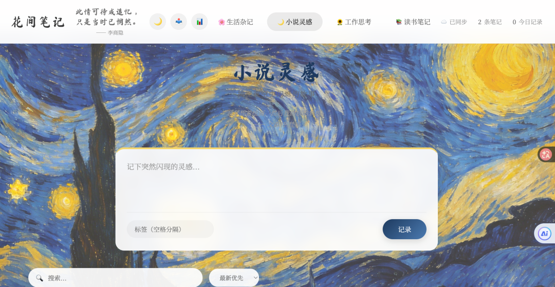 最终,这个网站从本地走向云端: 可以实时同步、 随时打开,成为一个真正“可用”的产品。当我打开它的时候,就像走进一个安静、只属于自己的文字星球。