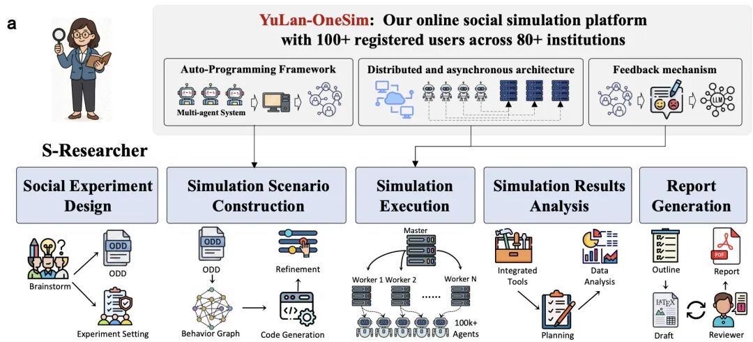目前 YuLan-OneSim 已经作为在线平台运行(yulan-onesim.cn),吸引了 80 多家机构的 100 多位注册用户。