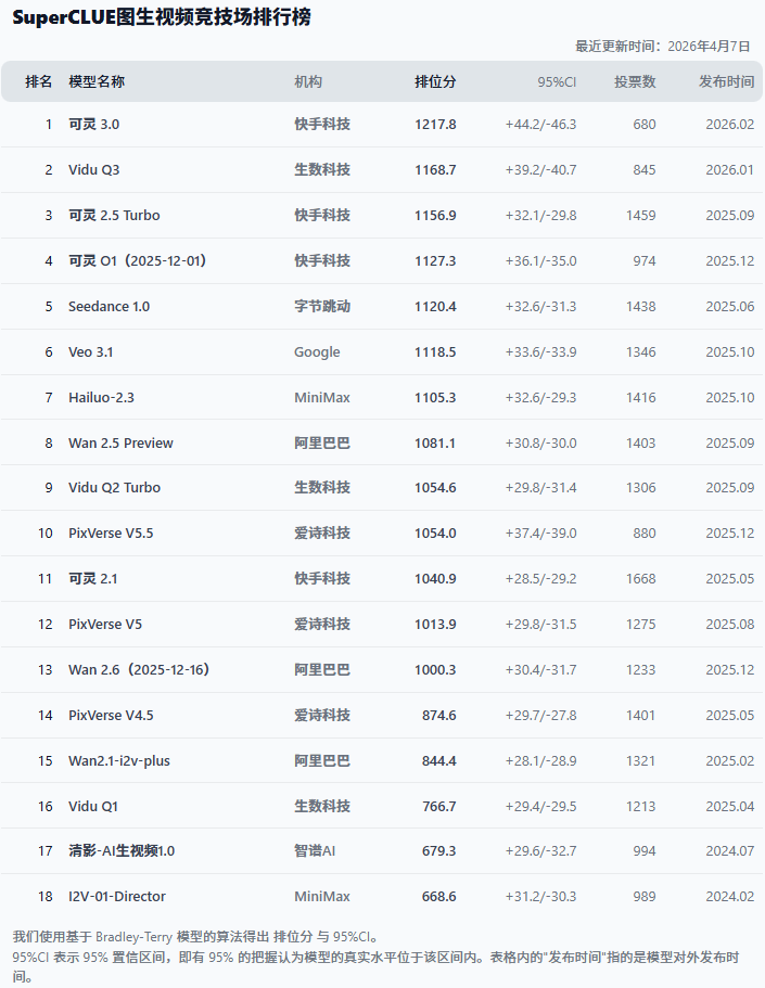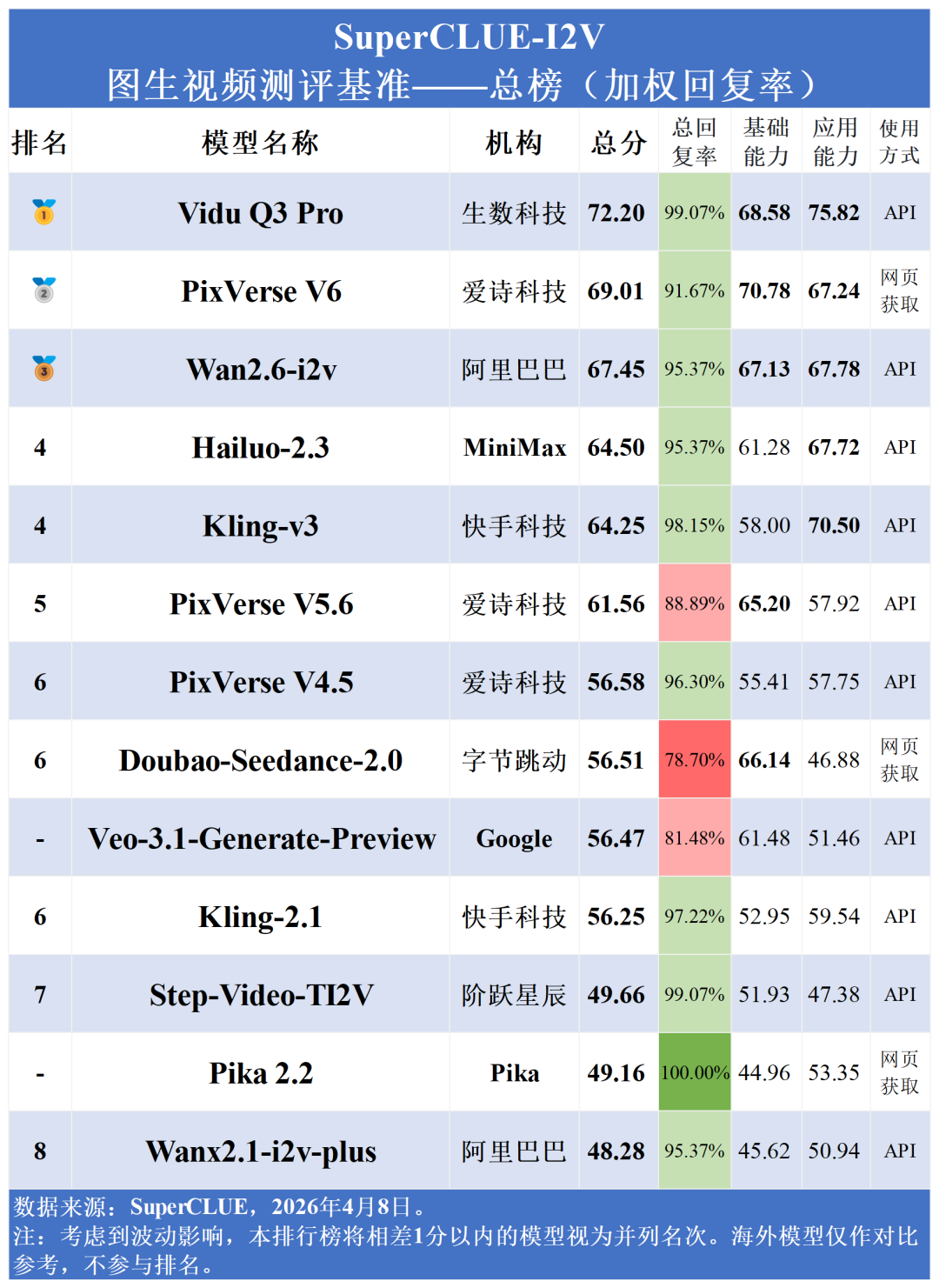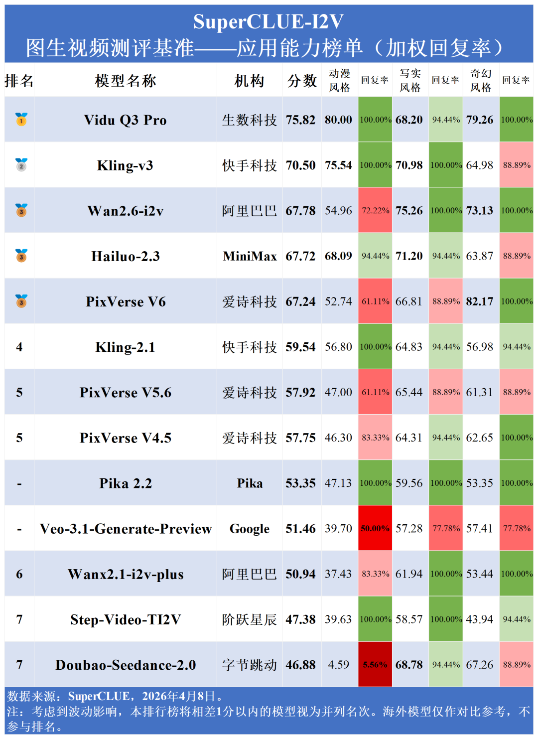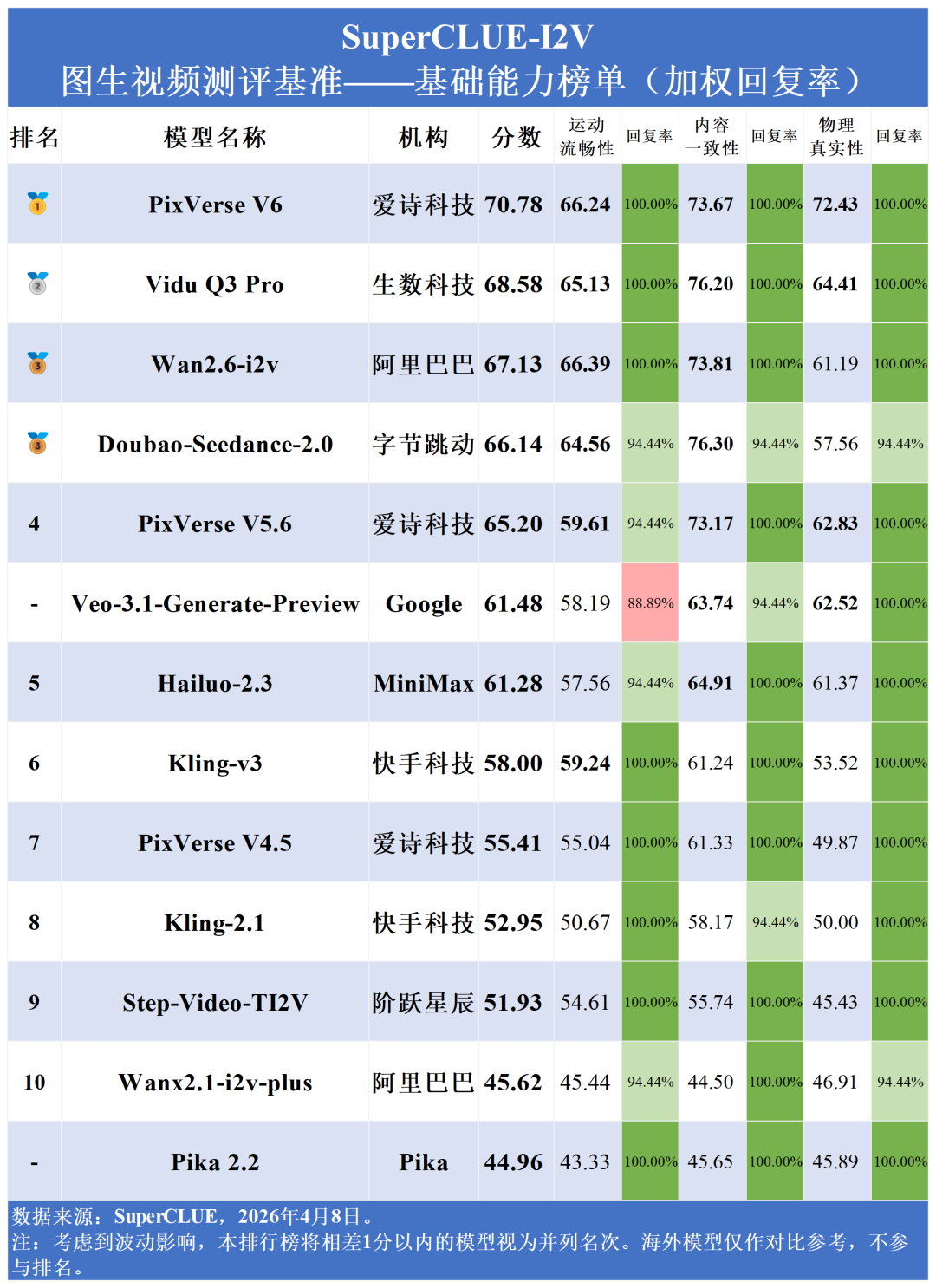 图生视频4月中文测评榜单发布 | PixVerse V6引领发展,国产模型百花齐放!