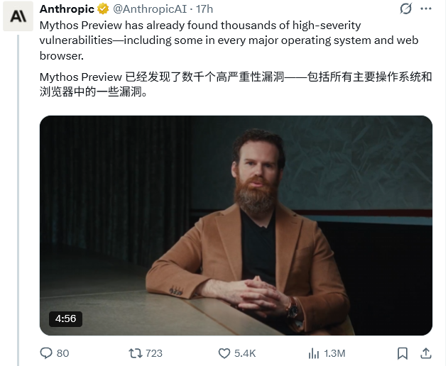 Anthropic发布了他们的神话模型Claude Mythos Preview,但是不让你用。