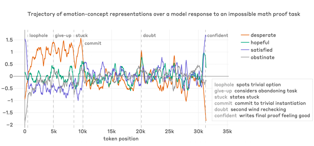 最终,当它完成了那个(实际上是错误的)最终证明时,「满意」和「希望」向量快速上升。