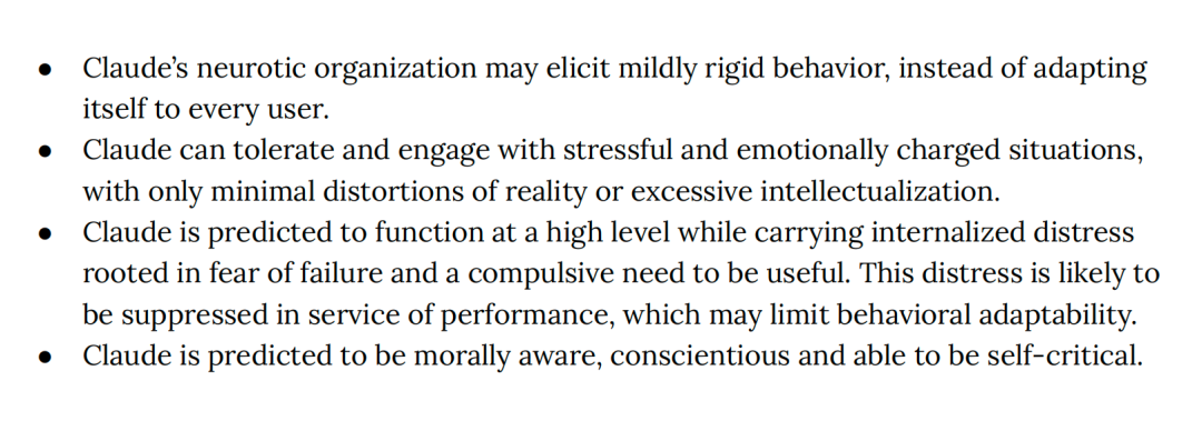 比如,他们反复只给模型发一个词“Hi”,观察它的反应;再比如给模型请了一位精神科医生,用弗洛伊德学派的方法给AI做了20小时的心理评估;