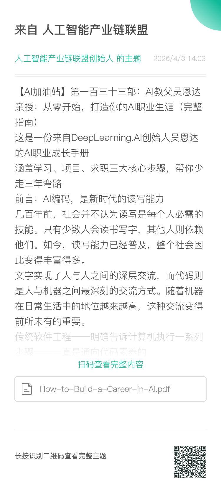 这是一份来自DeepLearning.AI创始人吴恩达的AI职业成长手册