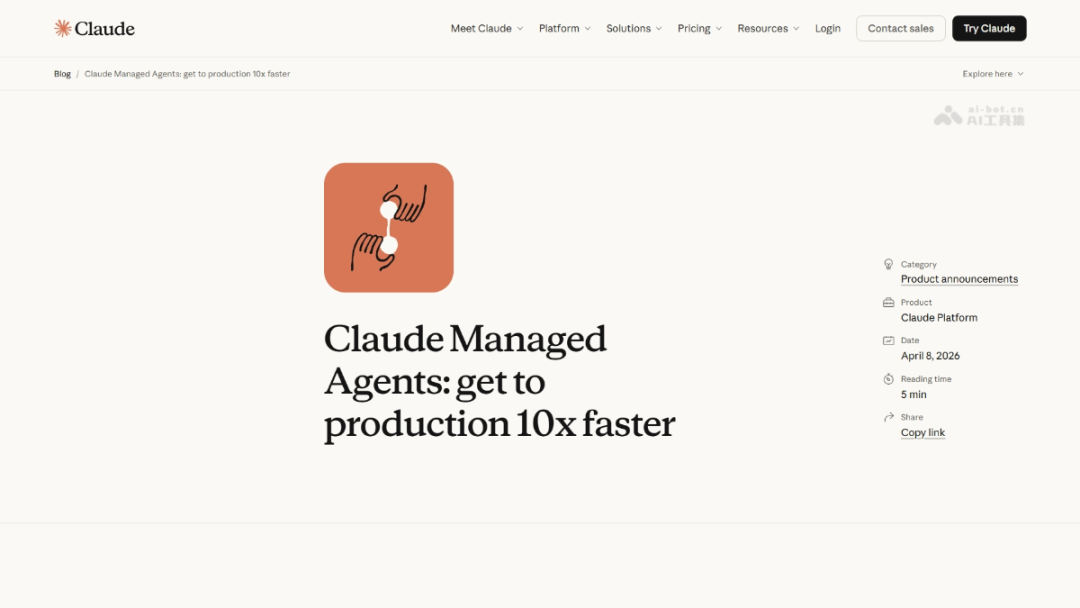 Anthropic 正式宣布于今日在 Claude 平台推出 Claude Managed Agents 的公开测试版,旨在为构建和扩展 AI Agent 提供一站式解决方案。此次发布标志着 Anthropic 深入参与 AI Agent 的完整生命周期管理,通过将性能优化的 Agent 框架与生产级基础设施相集成,帮助开发者将开发周期缩短至数天。