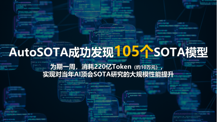 在一周的密集实验中,这套系统交出了一份惊人的成绩单。在消耗了约 220 亿 Token、约 10 万元人民币成本的前提下,系统基于前一年的顶会论文成功发现了 105 个性能显著提升的模型。