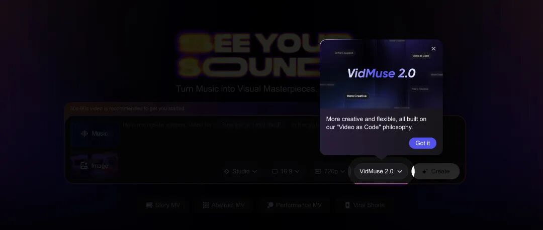 极客公园:聊聊你们在内测的新产品 VidMuse 2.0 吧。我看了你们的介绍,交互逻辑是「Music in,Video Out」,这次核心的升级是什么?