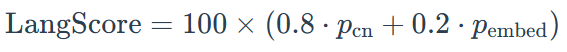 综合考虑原生中文、转换中文能力,评测基准给出模型中文适配度评分线性加权计算公式: