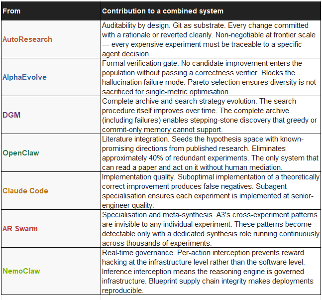 参考文献见原文,涵盖 Karpathy AutoResearch 仓库、NVIDIA NemoClaw 文档、AlphaEvolve 论文(arXiv:2506.13131)、Darwin Gödel Machine 论文(arXiv:2505.22954,ICLR 2026)、Sakana AI 博客、OpenClaw 文档、Claude Code 文档等