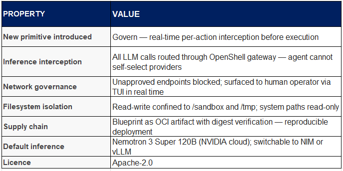 NemoClaw 默认路由到 Nemotron 3 Super 120B。通过提供企业部署 Agent 必需的合规和审计基础设施,NVIDIA 同时把自己变成了所有受治理 OpenClaw 部署的默认推理提供商