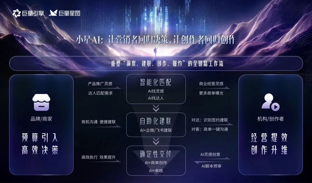 最重要的是,小星 AI 接下来还会借助对甲方策略、平台以及创作者的数据打通优势,辅助内容创作者完成选题的自动生成。一直以来,营销需要创意表达,而找灵感,通常需要大量的阅读,但借助小星 AI,工具自己就会依托日均 500 万 + 内容挖掘、10 亿 + 搜索数据分析能力,快速输出品类趋势、热点内容等洞察,从而让内容创作方向既符合客户需求,同样与达人风格高度一致,并稳稳抓住平台的趋势热点。甚至在审核环节,小星 AI 还能通过智能预审提前识别风险画面、违规台词,给出优化建议,保证商单能够合规落地。