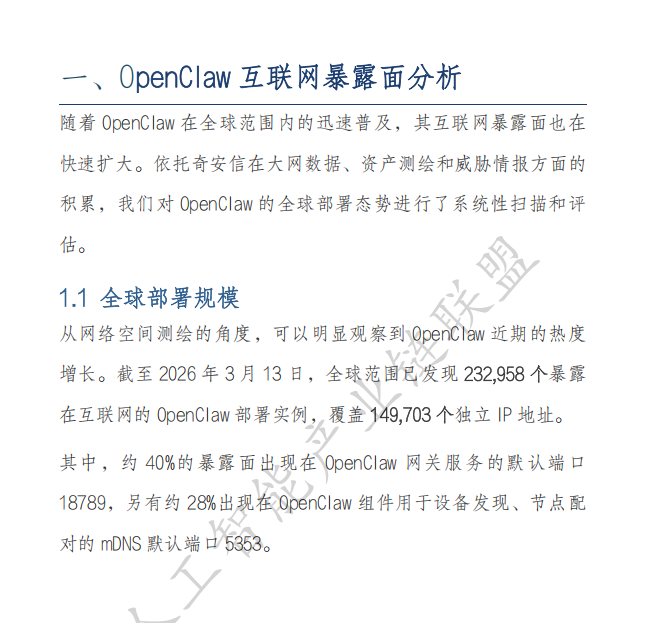 随着OpenClaw在全球范围内的迅速普及,这个被誉为"AI Agent操作系统"的开源项目正面临前所未有的安全挑战。奇安信XLab于2026年3月16日发布的这份深度报告,首次系统性披露了OpenClaw生态的三大核心威胁维度——互联网暴露面爆炸式增长、Skills供应链大规模投毒、仿冒域名泛滥成灾。这不仅是一次技术层面的安全预警,更是对整个AI Agent产业生态的深刻反思。