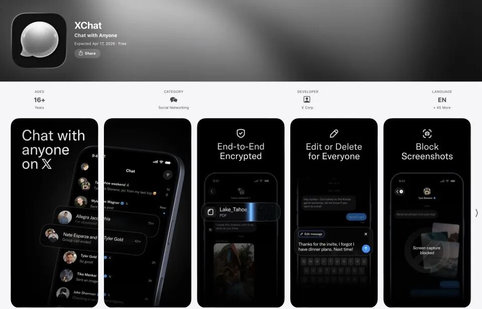 2026年4月17日,XChat正式面向iPhone和iPad用户开放下载。发布当日,Android版本的上线时间表仍未公布。