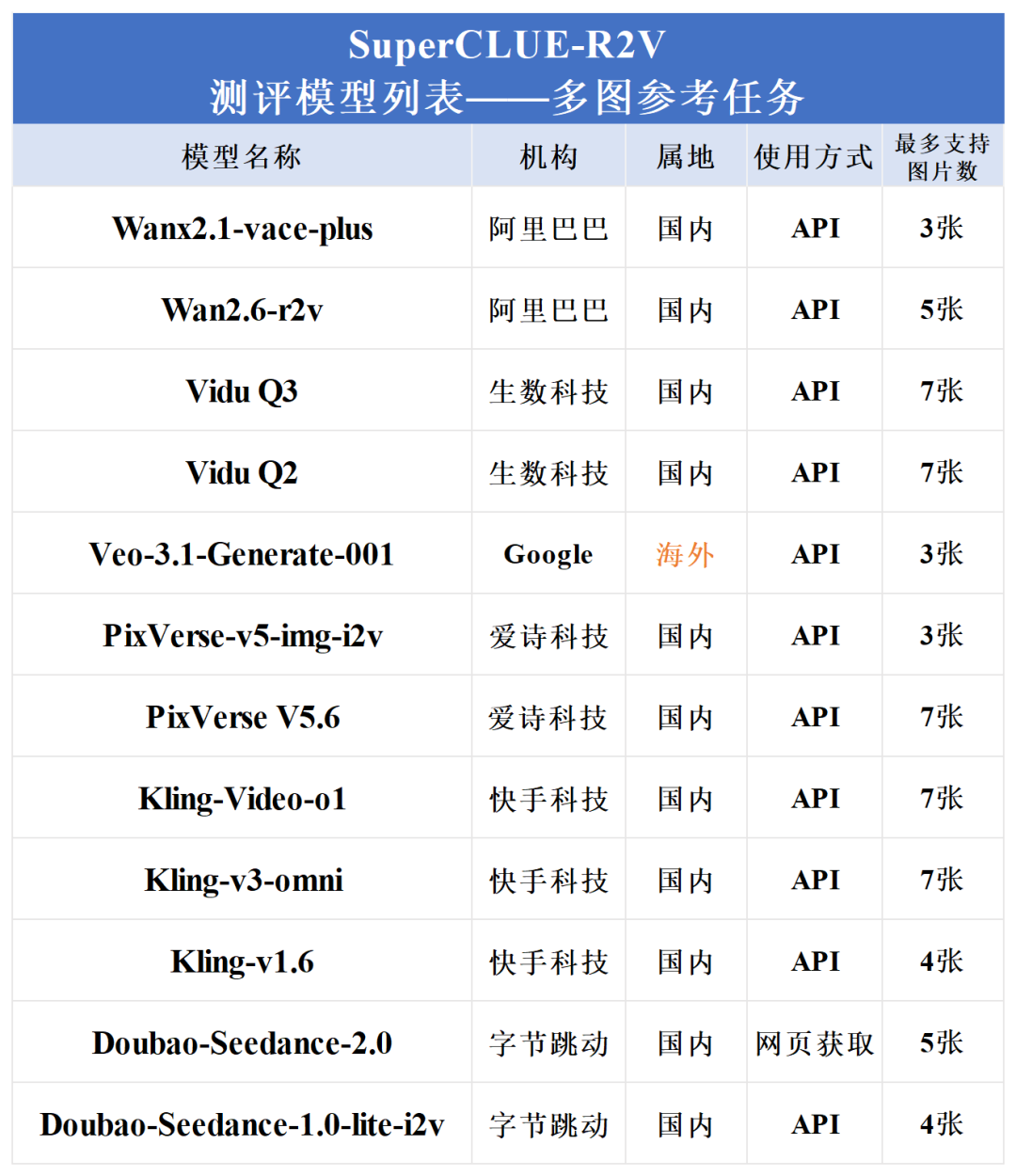 新增只支持单图参考的模型,最终13款参测模型包括2款海外模型和11款国内模型。
