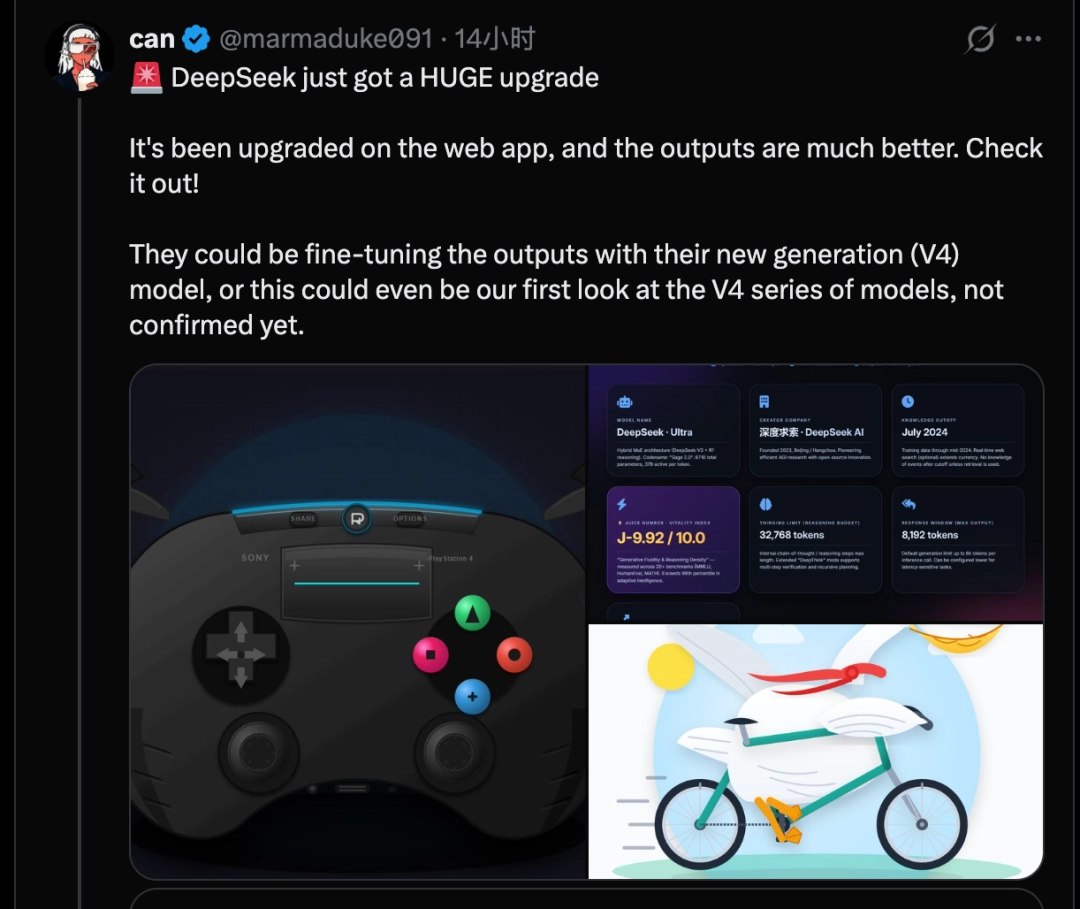 就在宕机前,很多用户报告 DeepSeek 网页版它变了,模型能力大幅提升。