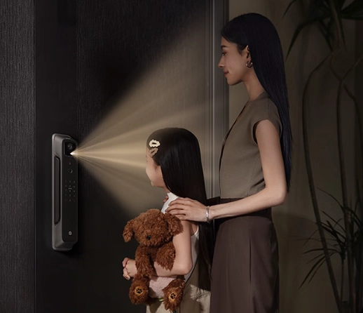 ,而在楼道漆黑时则会自动切换到黑白夜视模式。门内则集成了一块高清可视屏,当访客按铃时,屏幕会自动亮起,用户还可以随时唤醒查看门外情况。
