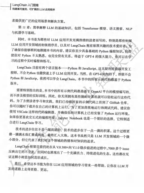 本书涉及的主要模型平台包括OpenAI(GPT-4、GPT-3.5-Turbo、文本嵌入模型)、Anthropic Claude2、Google PaLM2、Hugging Face Hub等。向量库包括FAISS、Chroma、Pinecone、Milvus。工具包括SerpAPI、Wikipedia、Arxiv、Power BI、CSV、Pandas等。所有示例代码均基于Python,读者可在GitHub仓库获取。