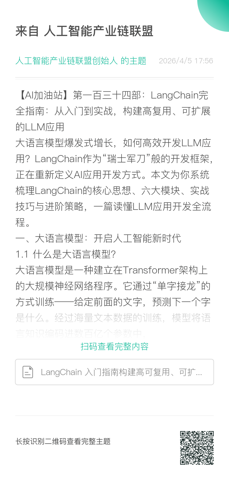 大语言模型爆发式增长,如何高效开发LLM应用?LangChain作为“瑞士军刀”般的开发框架,正在重新定义AI应用开发方式。本文为你系统梳理LangChain的核心思想、六大模块、实战技巧与进阶策略,一篇读懂LLM应用开发全流程。