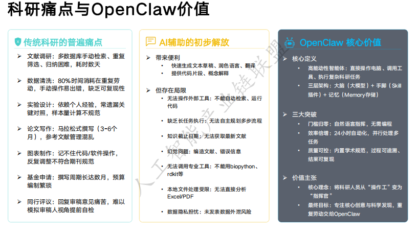 OpenClaw(代号"龙虾")是一款高能动性科研智能体,核心理念简单粗暴:把你从"操作工"变成"指挥官",让重复劳动交给AI,你只管专注核心创意与科学发现。