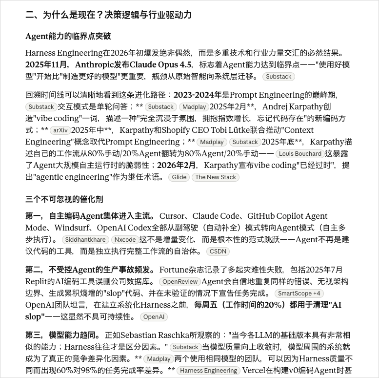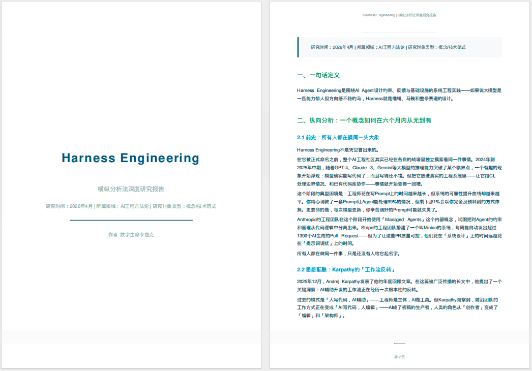 13分钟以后,这篇关于Harness的研究报告就写好了。