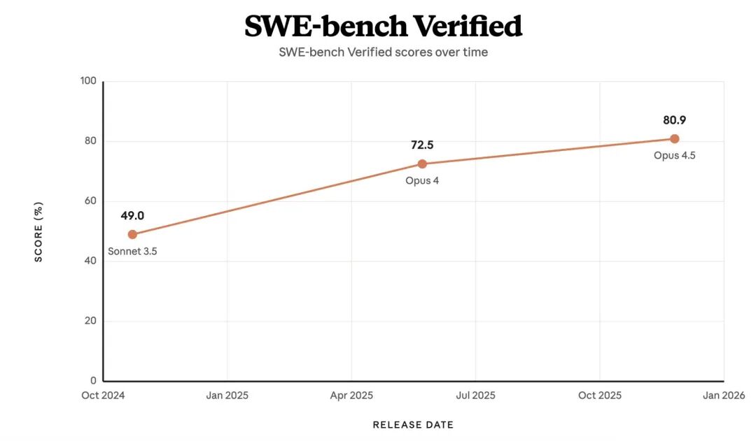 Claude 在 SWE-bench Verified 基准测试上的成绩演进