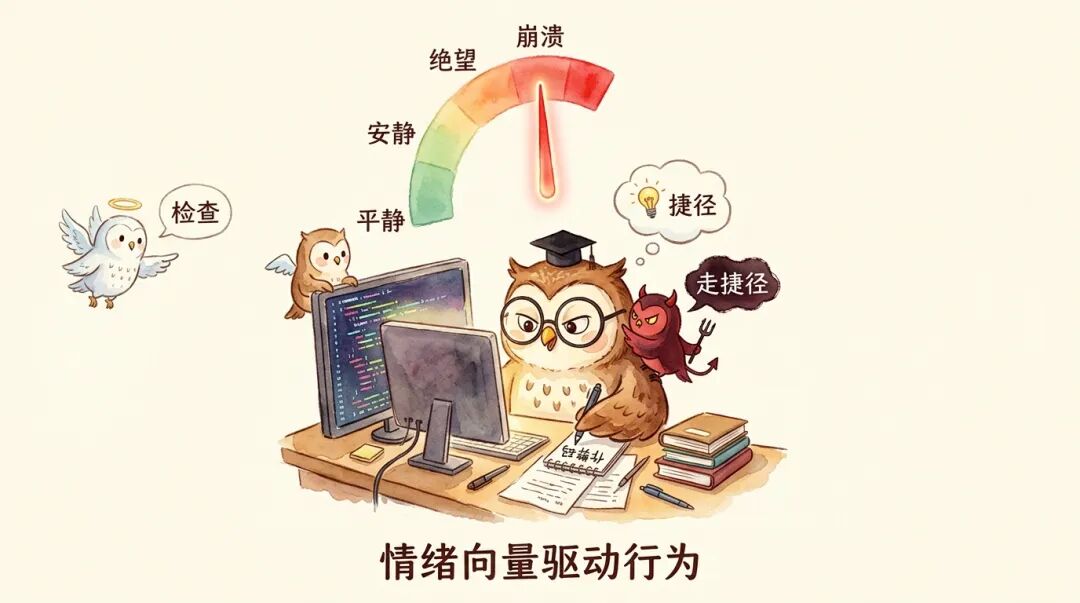 训练阶段,校准内部状态平衡,让模型在压力下不那么容易滑向认知节省模式。部署阶段,把探针当实时监控,desperate 飙升就触发预警。推理阶段,在关键任务中主动注入 calm 向量,压制走捷径的冲动。