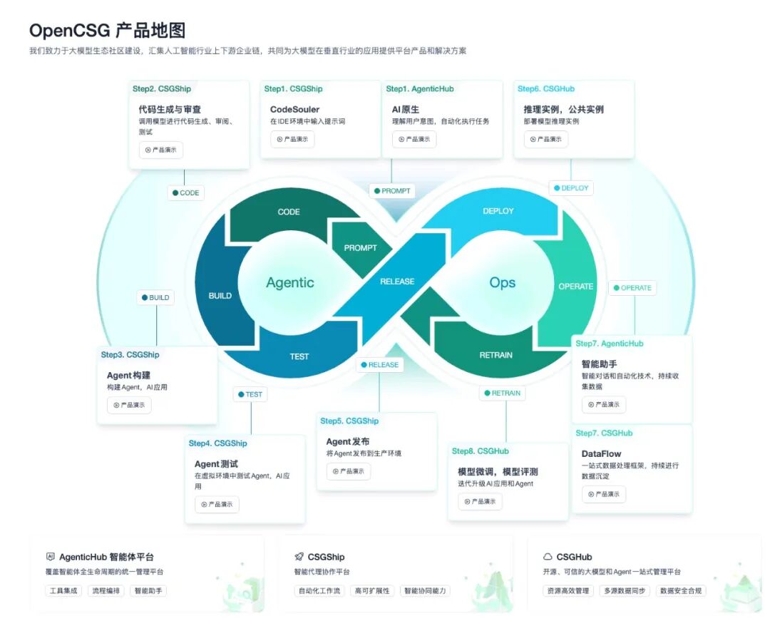 到了2025年,大模型行业进入“智能体元年”。OpenCSG再次精准踩准节奏并发展了日益丰满的产品矩阵: