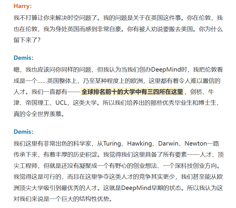 最后一点,离硅谷远一些当然有劣势——你没法融入那个圈子,接触不到最新的消息、八卦、潮流和氛围这些东西。我们在这里确实有点脱节,但我觉得这反而很有利于深度思考,让你的思维方式更有原创性。对于深科技这类领域来说很好,因为你不想被最新的风口分散注意力,这本来就是一个二十年的使命——这是我们在DeepMind创立之初就清楚的事。所以我觉得离那个漩涡远一点其实挺好的。