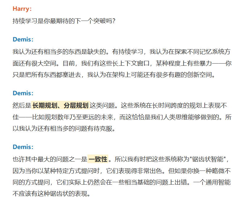 是的,我们一直有一个很一致的定义——AGI,基本上就是一个能展现出人类大脑所有认知能力的系统。这一点很重要,因为大脑是我们目前所知的、也许是宇宙中唯一能证明通用智能可行的存在。所以对我来说,这就是AGI应该达到的标准。