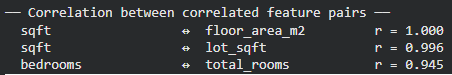 print("\n── Correlation between correlated feature pairs ──")