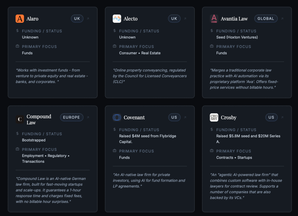 ‘I created this initially as a weekend project for my blog because I’ve been struggling to keep up with all the press announcements about AI law firms and wanted to have them all in one place.