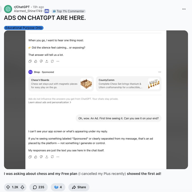 TBH we find this a bit disappointing. Ads that look like Google ads? Ads in GPT could look way cooler than this… For example, and