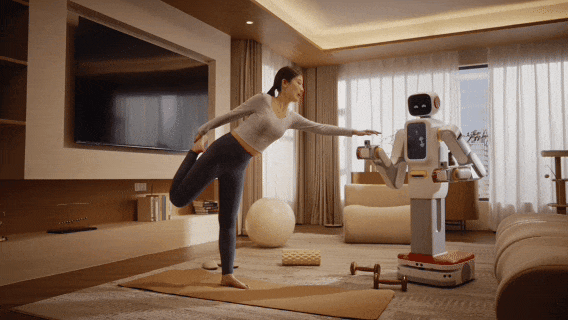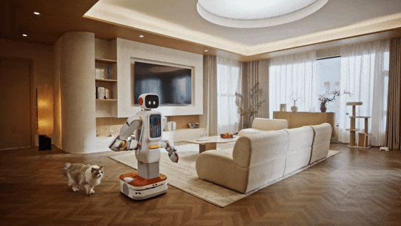 在真实的家庭场景中,F2 展现出的能力也远超传统家政服务的范畴——早晨,它会根据天气和主人的日程提供穿衣建议,准备好早餐并收拾厨房;白天,它可以接听电话、记录留言,在主人工作时保持安静但随时待命;傍晚,它能陪孩子完成作业,用成语接龙或下棋来寓教于乐;夜晚,它可以陪女主人做瑜伽,为男主人泡一杯茶,在全家入睡后执行巡逻安防任务。对于养宠物的家庭,F2 还能定时补充猫粮狗粮,用激光笔逗猫,甚至在主人出差时通过摄像头远程互动。