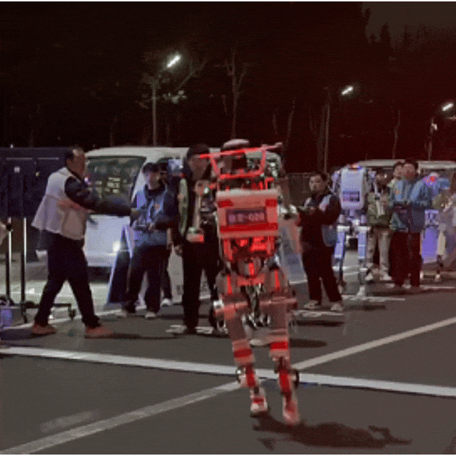 4月11日晚至12日凌晨,主办方组织开展了机器人马拉松的全流程、全场景、全要素测试活动,现在很多流传出来的画面,都来自于这场夜间测试。