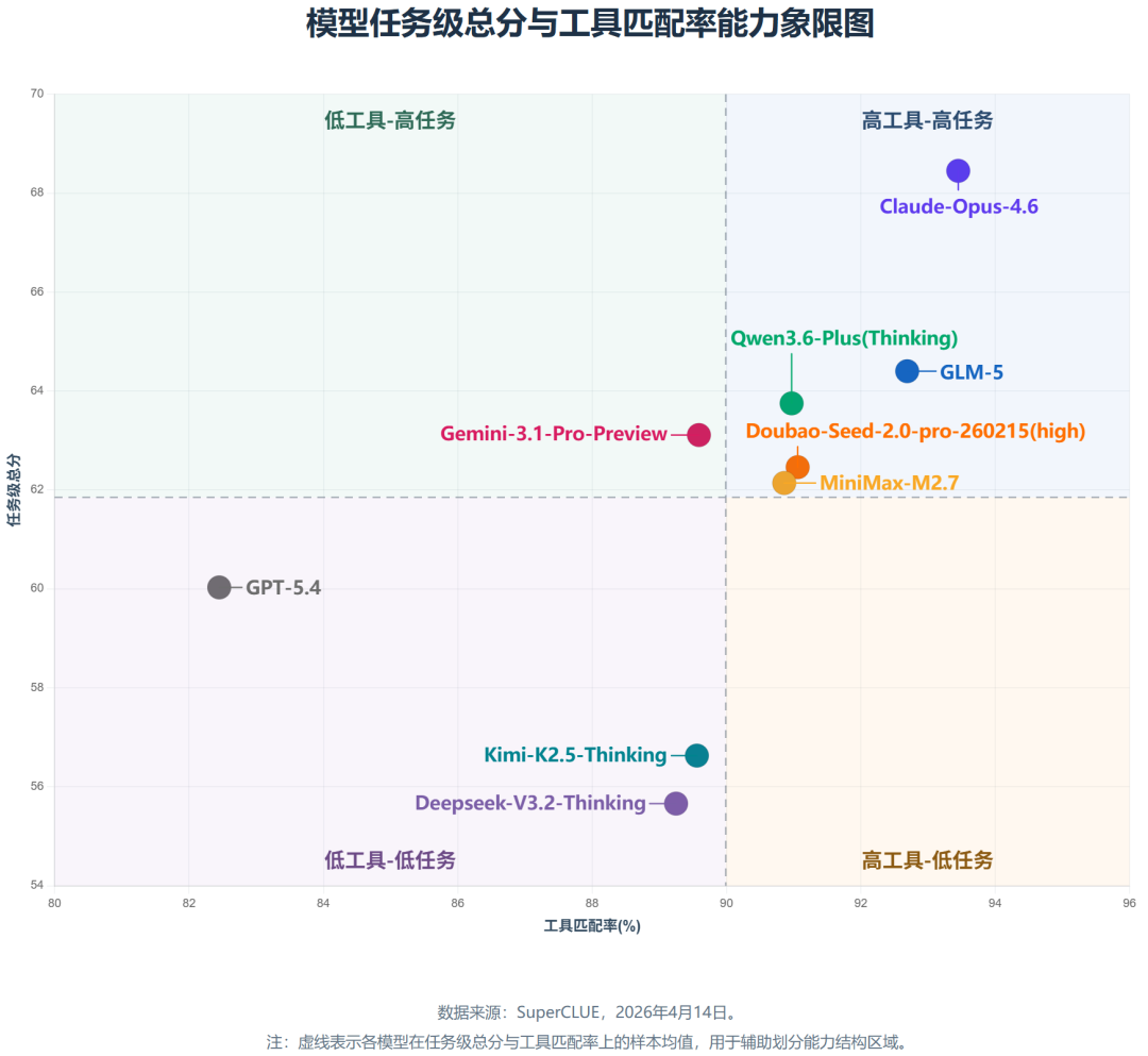 2. 模型任务级总分与工具匹配率能力象限图