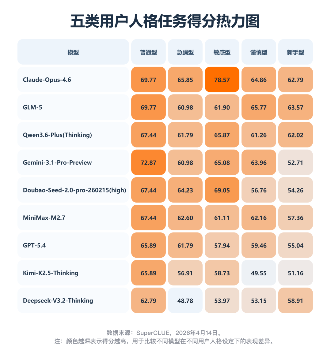 Claude-Opus-4.6 在 敏感型 用户上表现非常突出,说明它在处理更细腻、更高反馈敏感度的用户时可能更具优势。