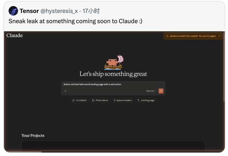 X 用户 @hysteresis_x 发布了一张尚未正式上线的 Claude 界面截图,配文:“带大家偷瞄一眼 Claude 马上要推出的新东西。”
