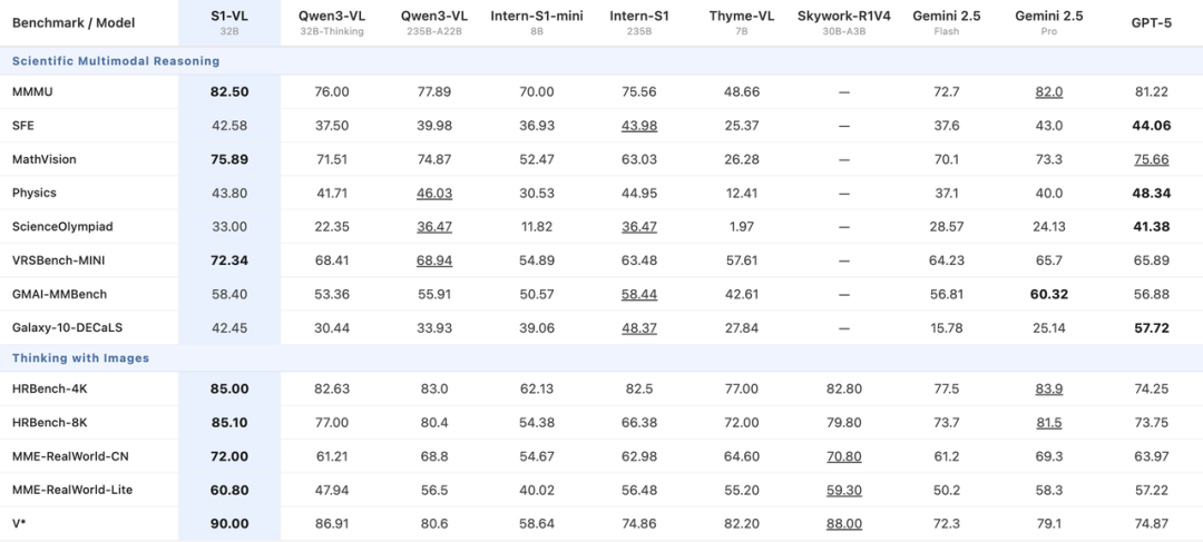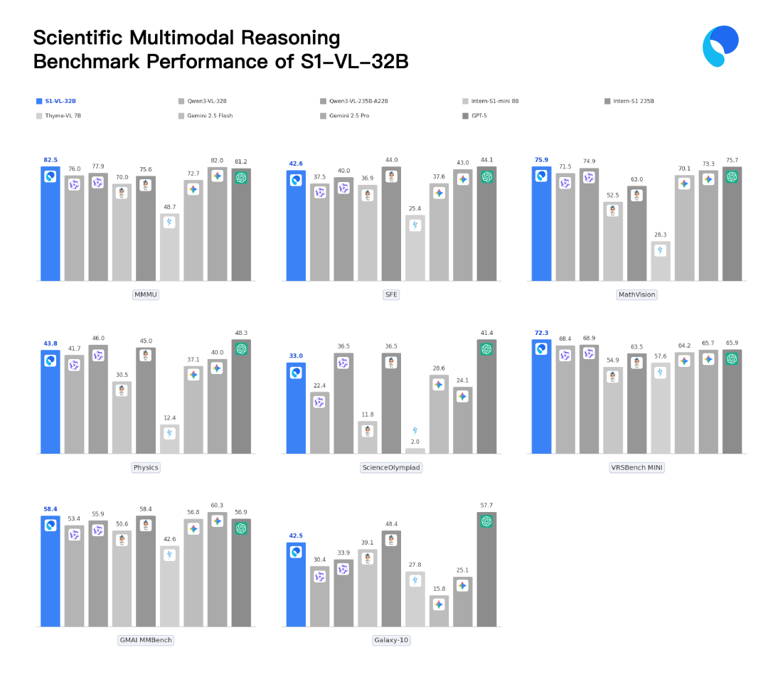 S1-VL-32B在复杂科研图像理解、多步逻辑分析和高分辨率视觉推理任务中具备明显优势。
