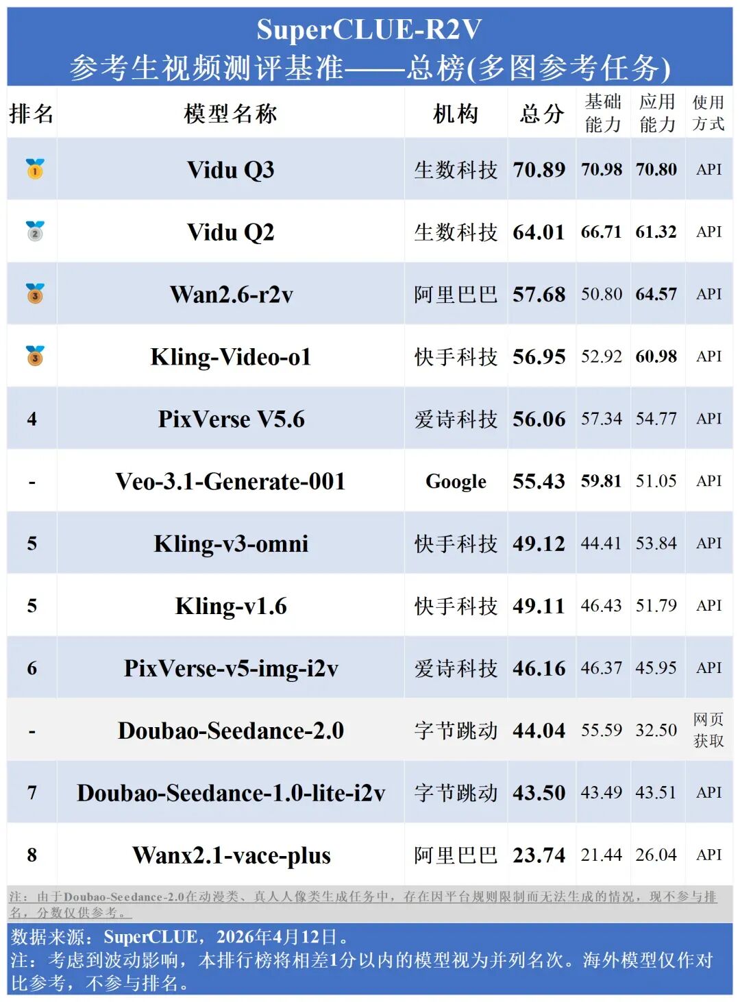 在全球首个参考生视频榜单SuperClue上,生数科技的Vidu Q3同时登顶多图参考总榜和单图参考榜。此前,刚发布的Vidu Q3,就登顶了国际权威 AI 基准测试机构 Artificial Analysis榜单。